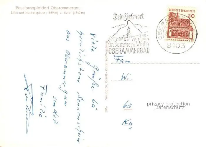Oberammergau Notkarspitze Kofel Oberammergau postalisch gelaufen nach 1965 Erhaltung siehe scans [KathaD81] Kathoren