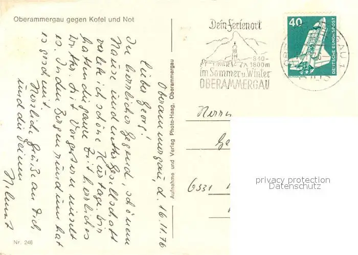 Oberammergau Panorama Kofel Not Oberammergau postalisch gelaufen 1976 Erhaltung siehe scans [KathaD81] Kathoren