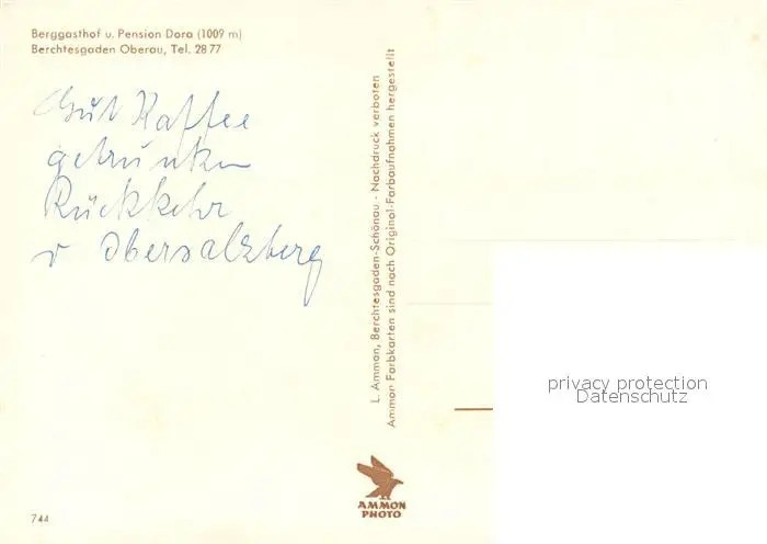 Oberau_Berchtesgaden Berggasthof und Pension Dora Oberau Berchtesgaden postalisch nicht gelaufen nach 1965 Erhaltung siehe scans [WerneD78] WernPID7