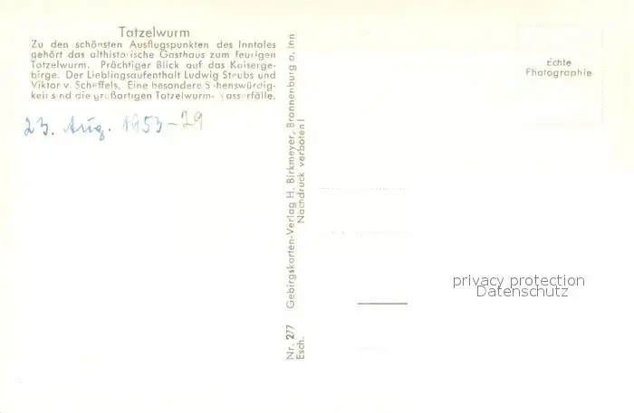 Oberaudorf Alpengasthof Feuriger Tatzelwurm Alpen Oberaudorf postalisch nicht gelaufen 1953 Erhaltung siehe scans [FriedD77] Frierer