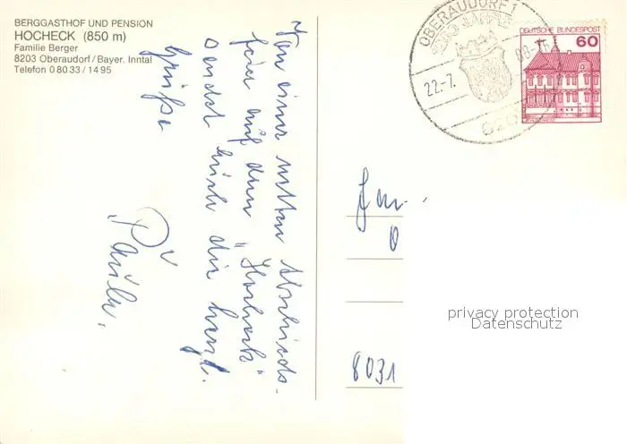 Oberaudorf Berggasthof Hocheck Oberaudorf postalisch gelaufen nach 1965 Erhaltung siehe scans [NatalD47] NataID47