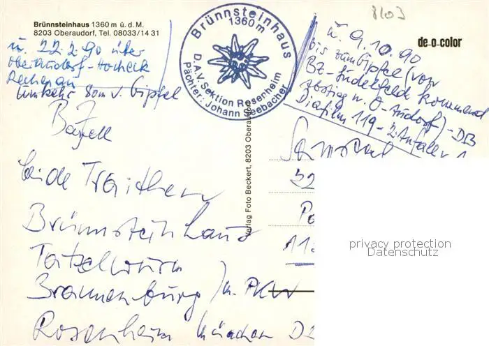 Oberaudorf Bruennsteinhaus Oberaudorf postalisch gelaufen 1990 Erhaltung siehe scans [WerneD78] WernPID7