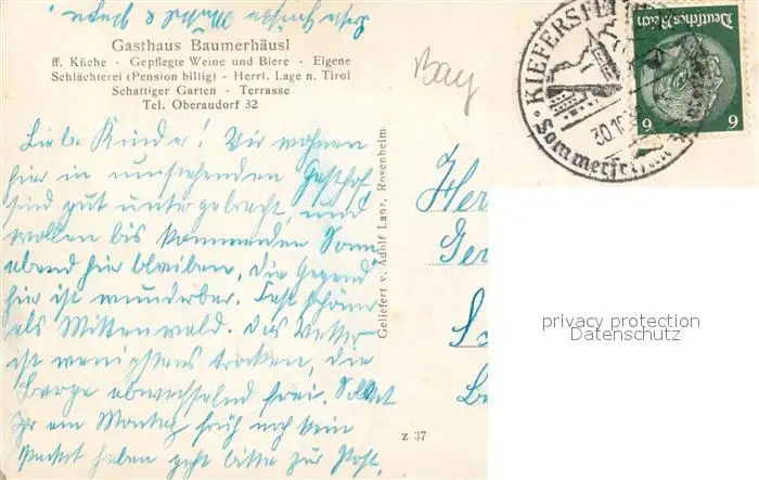 Oberaudorf Gasthaus Baumerhaeusl Oberaudorf postalisch gelaufen 1938 Erhaltung siehe scans [WerneD78] WernPID7