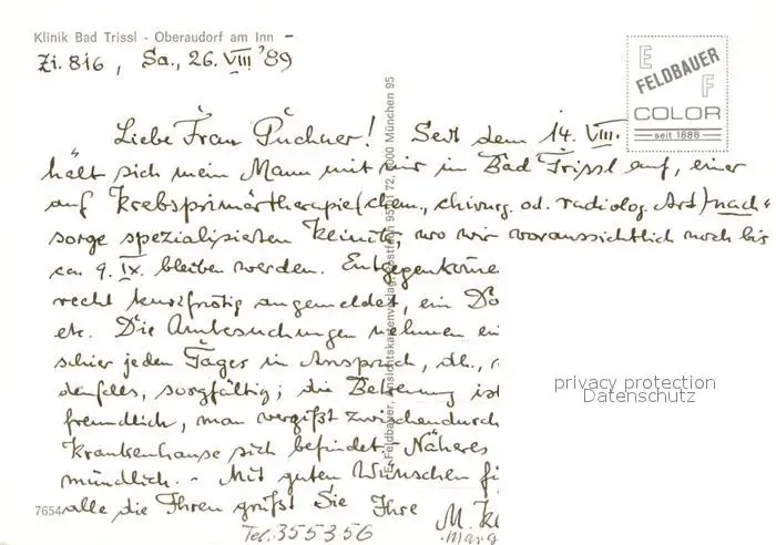 Oberaudorf_Inn Klinik Bad Trissl postalisch nicht gelaufen 1989 Erhaltung siehe scans [LiesaD40] LiesID40