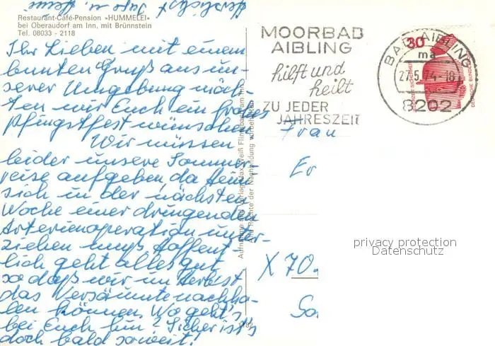 Oberaudorf_Inn Restaurant Café Pension Hummelei Blick zum Bruennstein Mangfallgebirge postalisch gelaufen 1974 Erhaltung siehe scans [FriedD77] Frierer