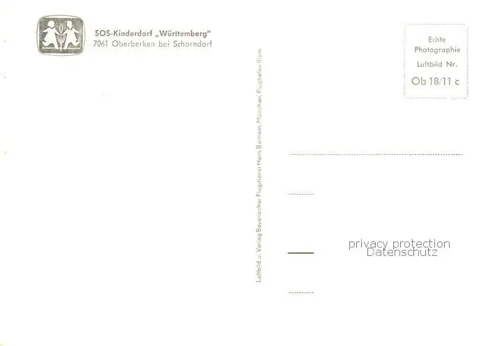 Oberberken SOS Kinderdorf Wuerttemberg Oberberken postalisch nicht gelaufen nach 1965 Fliegeraufnahme Erhaltung siehe scans [FriedD77] Fliegeraufnahme Frierer