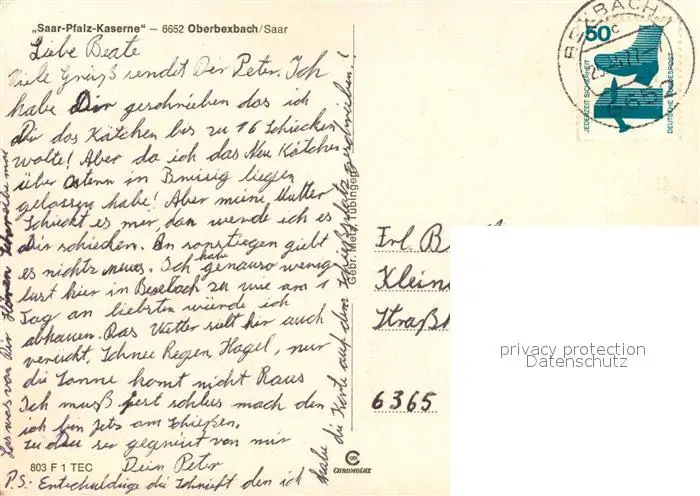 Oberbexbach Kategorie Alte Ansichtskarten Postkarten bx52740 Oberbexbach Saar Pfalz Kaserne Landschaftspanorama Wappen Oberbexbach postalisch gelaufen 1977 Erhaltung siehe scans [FriedD77]