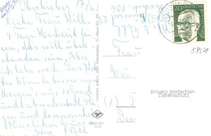 Oberbieber Landschaftspanorama Blick vom Koeppel Oberbieber postalisch gelaufen 1971 Erhaltung siehe scans [FriedD77] Frierer