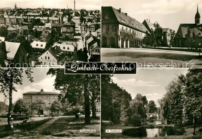 AK / Ansichtskarte Oberfrohna Stadtpanorama Rathaus Kirche Goetheschule Stadtpark Teich Oberfrohna
