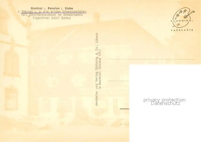 Oberharmersbach Gasthof Pension zur Stube zu Sternen und den drei Schweinskoepfen Oberharmersbach postalisch nicht gelaufen nach 1965 Erhaltung siehe scans [WerneD78] WernPID7