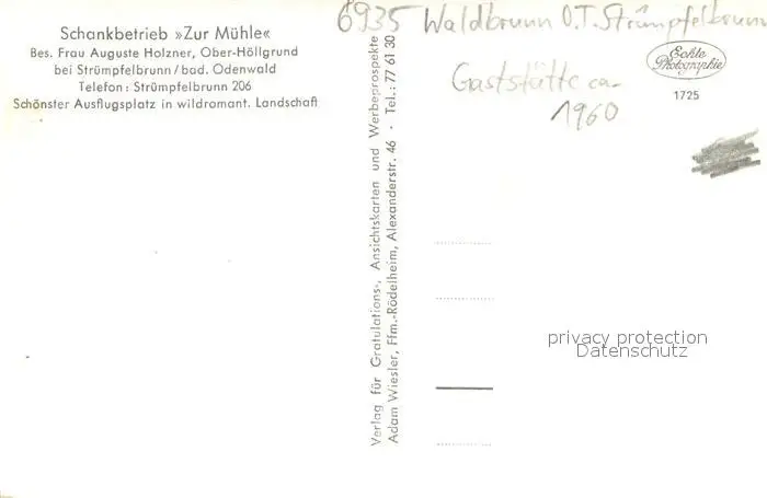 Oberhoellgrund_Waldbrunn Schankbetrieb Zur Muehle Gaststaette Ansicht vom Waldrand aus postalisch nicht gelaufen ca. 1960 Erhaltung siehe scans [FriedD77] Frierer