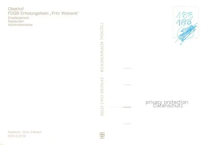 Oberhof_Thueringen FDGB Erholungsheim Fritz Weineck Empfangshalle Restaurant Alchimistenkeller Oberhof Thueringen postalisch nicht gelaufen 1980 Erhaltung siehe scans [FriedD77] Frierer