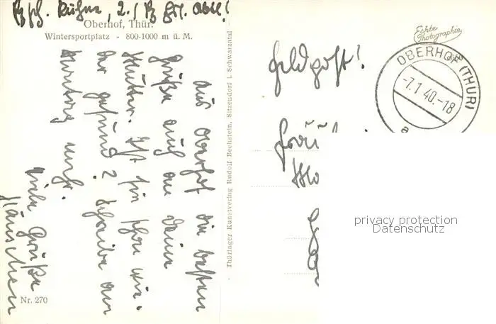 Oberhof_Thueringen Panorama Oberhof Thueringen postalisch gelaufen 1940 Feldpost auf Karte (Motiv) Erhaltung siehe scans [WerneD78] Feldpost auf Karte (Motiv) WernPID7