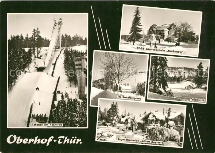 AK / Ansichtskarte Oberhof_Thueringen Schanze am Rennsteig FDGB Erholungsheim Stachanow Kanzerlsgrund Jugendherberge Winterlandschaft Oberhof Thueringen