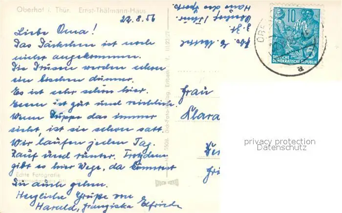 Oberhof_Thueringen ernst-Thaelmann-Haus Aussenansicht Oberhof Thueringen postalisch gelaufen 1956 Erhaltung siehe scans [LiesaD40] LiesID40