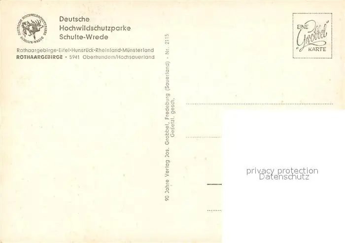 Oberhundem Deutsche Hochwildschutzparke Schule Wrede Rothaargebirge Oberhundem postalisch nicht gelaufen nach 1965 Erhaltung siehe scans [FriedD77] Frierer