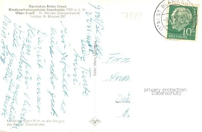 Oberibach_St_Blasien Deutsches Rotes Kreuz Kindererholungsheim Sonnhalde Alpenblick Oberibach_St_Blasien postalisch gelaufen 1957 Erhaltung siehe scans [FriedD77] Frierer
