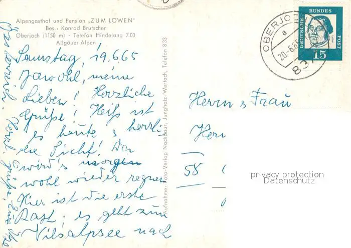 Oberjoch Alpengasthof Pension Zum Loewen Oberjoch postalisch gelaufen 1965 Erhaltung siehe scans [WerneD78] WernPID7