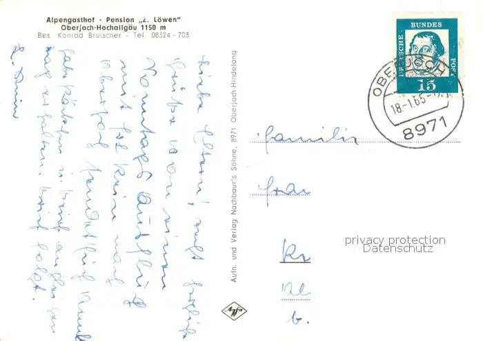 Oberjoch Alpengasthof Pension zum Loewen Oberjoch postalisch gelaufen 1965 Erhaltung siehe scans [WerneD78] WernPID7