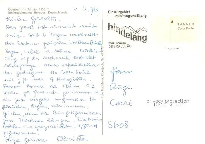 Oberjoch Fliegeraufnahme mit Kuehgundkopf Iseler Hochvogel Oberjoch postalisch gelaufen 1976 Erhaltung siehe scans [WerneD78] WernPID7
