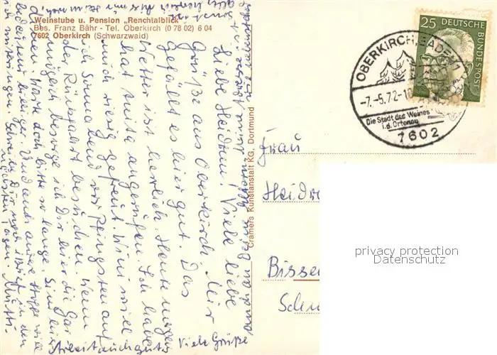 Oberkirch_Baden Weinstube Pension Renchtalblick Gaststube Panorama Oberkirch_Baden postalisch gelaufen 1972 Erhaltung siehe scans [WerneD78] WernPID7