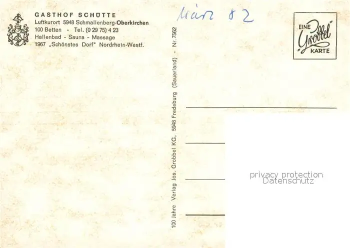 Oberkirchen_Sauerland Gasthof Schuette Liegewiese Swimming Pool Oberkirchen_Sauerland postalisch nicht gelaufen 1982 Erhaltung siehe scans [FriedD77] Frierer