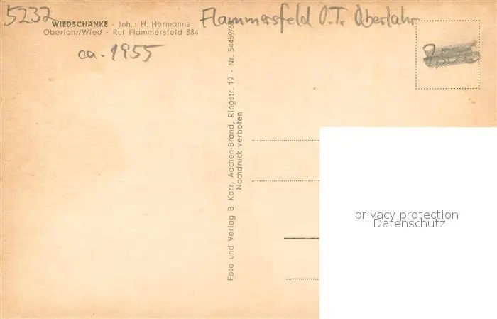 Oberlahr_Westerwald Gaststaette Restaurant Wiedschaenke Oberlahr_Westerwald postalisch nicht gelaufen ca. 1955 Erhaltung siehe scans [FriedD77] Frierer