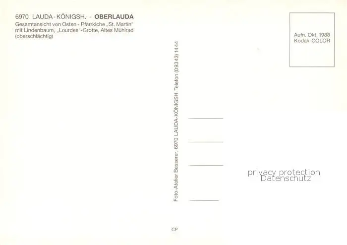 Oberlauda Gesamtansicht Herbststimmung Pfarrkirche St Martin Lindenbaum Lourdes Grotte Altes Muehlrad Oberlauda postalisch nicht gelaufen 1988 Erhaltung siehe scans [FriedD77] Frierer