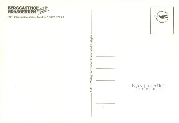 Obermaiselstein Berggasthof Grasgehren Gastraum Terrasse Schlafraum Obermaiselstein postalisch nicht gelaufen nach 1965 Erhaltung siehe scans [FriedD77] Frierer