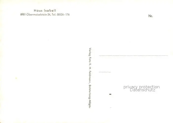Obermaiselstein Gaestehaus Pension Haus Isabell Alpen Obermaiselstein postalisch nicht gelaufen nach 1965 Erhaltung siehe scans [FriedD77] Frierer