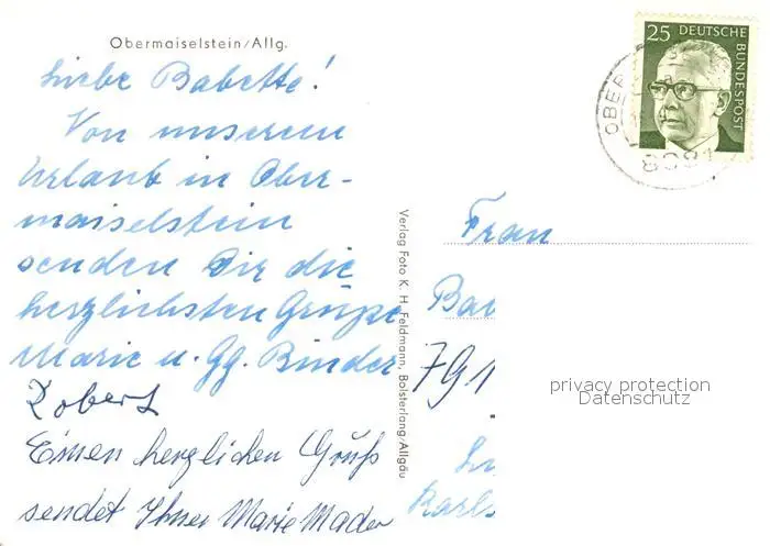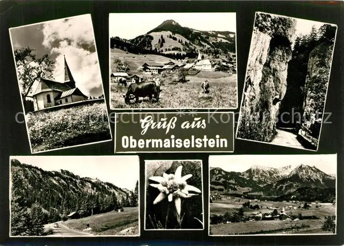 Obermaiselstein Gesamtansicht mit Alpenpanorama Kirche Kuehe Schlucht Felsen Edelweiss Obermaiselstein postalisch gelaufen 1971 Erhaltung siehe scans [FriedD77] Frierer