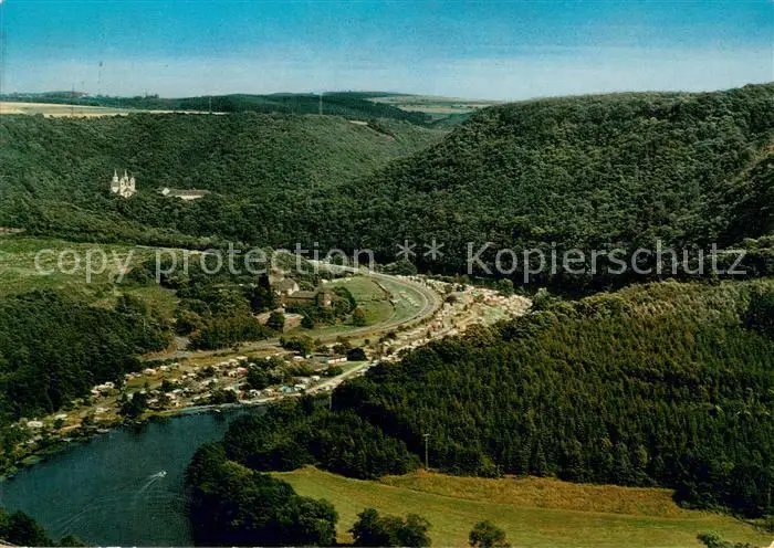 AK / Ansichtskarte Obernhof_Lahn Fliegeraufnahme Schloss Langenau mit Campingplatz Kloster Arnstein Obernhof_Lahn