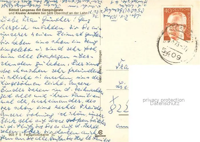 Obernhof_Lahn Fliegeraufnahme Schloss Langenau mit Campingplatz Kloster Arnstein Obernhof_Lahn postalisch gelaufen 1975 Erhaltung siehe scans [LiesaD40] LiesID40