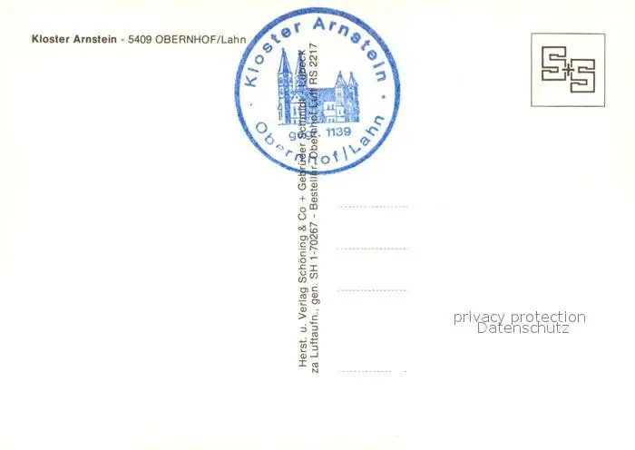 Obernhof_Lahn Kloster Arnstein Fliegeraufnahme Obernhof_Lahn postalisch nicht gelaufen nach 1965 Erhaltung siehe scans [FriedD77] Frierer