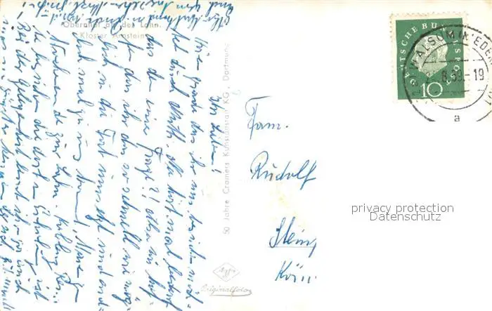 Obernhof_Lahn Kloster Arnstein Fliegeraufnahme Obernhof_Lahn postalisch gelaufen 1959 Erhaltung siehe scans [WerneD78] WernPID7