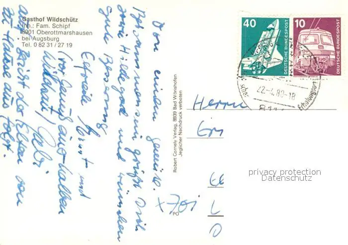 Oberottmarshausen Gasthof Wildschuetz Gastraeume Theke Oberottmarshausen postalisch gelaufen 1989 Erhaltung siehe scans [WerneD78] WernPID7