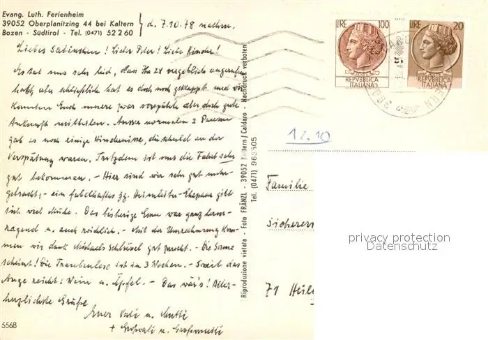 Oberplanitz Evang. luth. Ferienheim Oberplanitz postalisch gelaufen 1978 Erhaltung siehe scans [FriedD77] Frierer