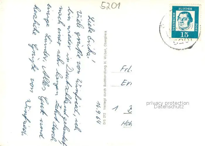 Oberpleis Ortsansicht mit Kirche Blick auf den oelberg Oberpleis postalisch gelaufen 1964 Erhaltung siehe scans [FriedD77] Frierer