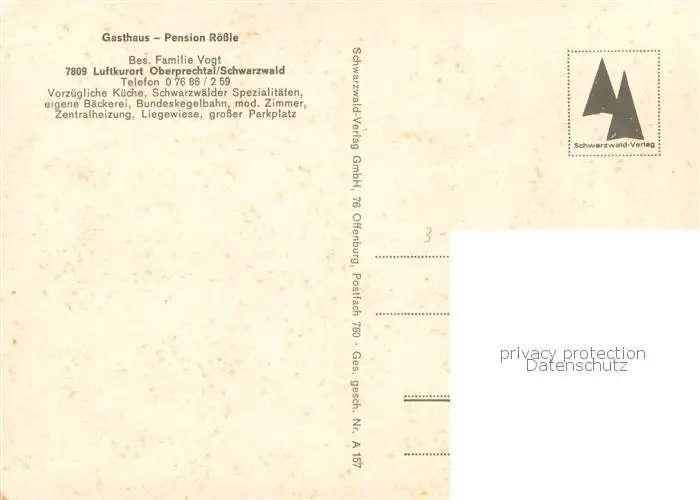 Oberprechtal Gasthaus Roessle Oberprechtal postalisch nicht gelaufen nach 1965 Erhaltung siehe scans [WerneD78] WernPID7