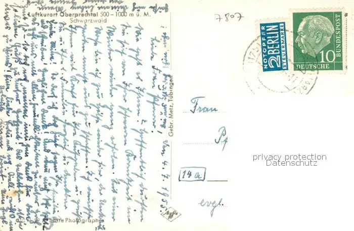 Oberprechtal Ortsansicht Oberprechtal postalisch gelaufen 1955 Erhaltung siehe scans [FriedD77] Frierer