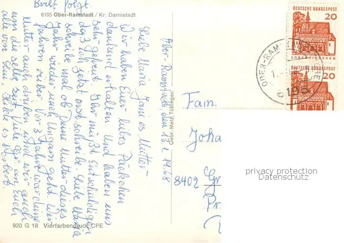 Oberramstadt Schwimmbad Panorama Rathaus Kirche Oberramstadt postalisch gelaufen 1968 Erhaltung siehe scans [FriedD77] Frierer