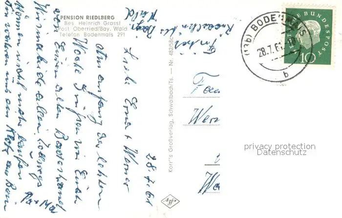 Oberried_Bischofsmais Pension Riedlberg im Bayerischen Wald Oberried Bischofsmais postalisch gelaufen 1961 Erhaltung siehe scans [FriedD77] Frierer