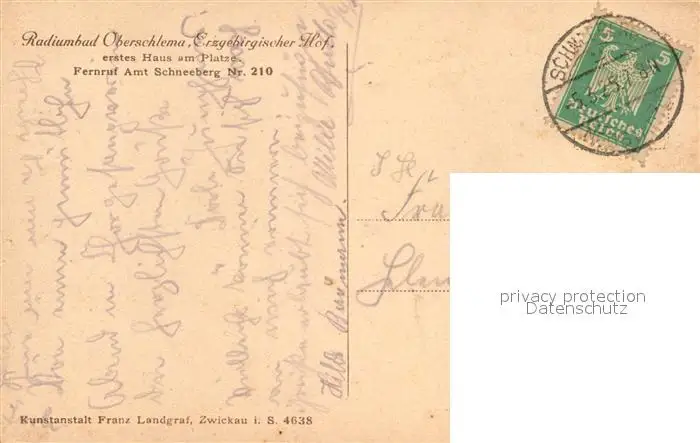 Oberschlema_Erzgebirge Radiumbad Erzgebirgischer Hof Oberschlema_Erzgebirge postalisch gelaufen 1925 Erhaltung siehe scans [FriedD77] Frierer