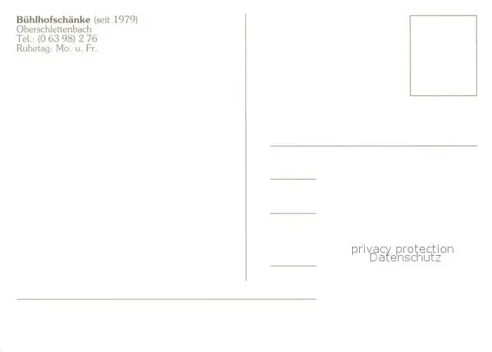 Oberschlettenbach Buehlhofschaenke Oberschlettenbach postalisch nicht gelaufen nach 1965 Erhaltung siehe scans [WerneD78] WernPID7