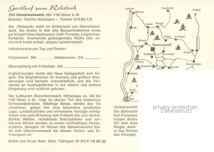 Obersimonswald Gasthof zum Rebstock Gastraeume Panorama Obersimonswald postalisch nicht gelaufen nach 1965 Werbekarte (keine Postkarte) Erhaltung siehe scans [WerneD78] Werbekarte (keine Postkarte) WernPID7