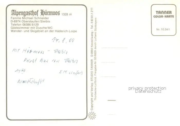 Oberstaufen Alpengasthof Hoermoos Gaststube Terrasse Fremdenzimmer See Fliegeraufnahme Oberstaufen postalisch nicht gelaufen 2000 Erhaltung siehe scans [FriedD77] Frierer