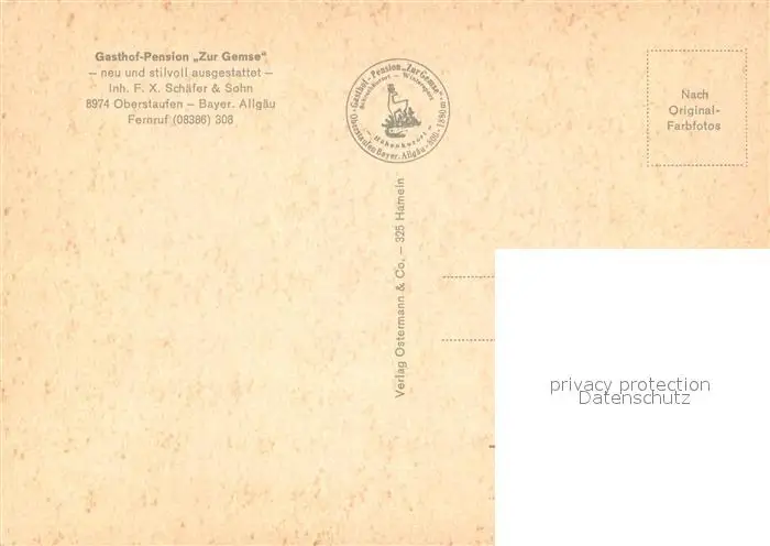 Oberstaufen Gasthof Pension Zur Gemse Oberstaufen postalisch nicht gelaufen nach 1965 Erhaltung siehe scans [FriedD77] Frierer