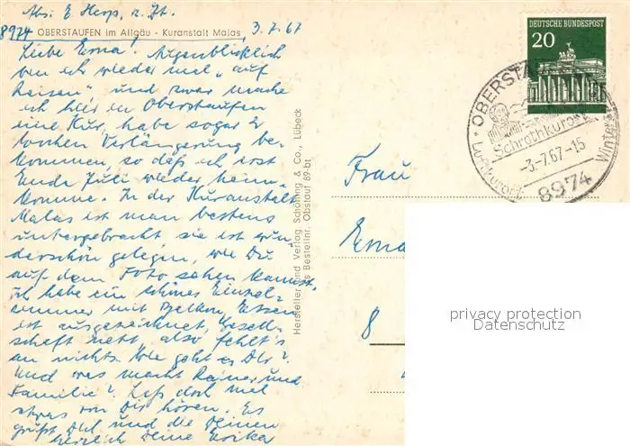 Oberstaufen Kuranstalt Malas Landschaftspanorama Allgaeuer Alpen Oberstaufen postalisch gelaufen 1967 Erhaltung siehe scans [FriedD77] Frierer