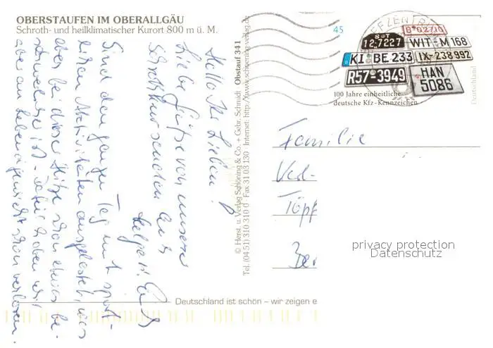 Oberstaufen Panorama Pferdekutsche Brunnen Stadtansichten Oberstaufen postalisch gelaufen nach 1965 Erhaltung siehe scans [KathaD81] Kathoren