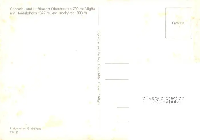 Oberstaufen Panorama mit Rindalphorn und Hochgrat Allgaeuer Alpen Oberstaufen postalisch nicht gelaufen nach 1965 Fliegeraufnahme Erhaltung siehe scans [FriedD77] Fliegeraufnahme Frierer